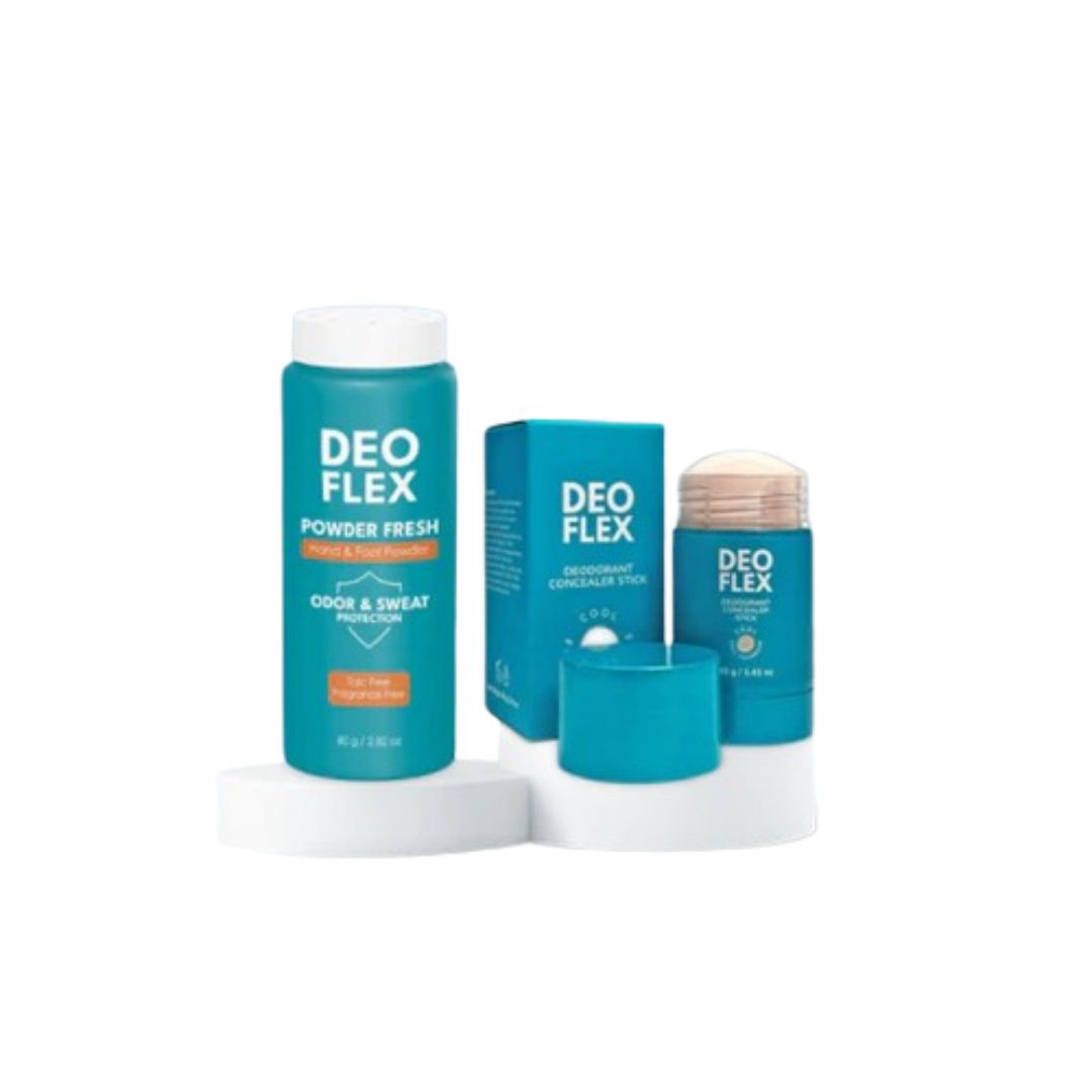 Deoflex Powder & Concealer Duo by Mixtrue Beauty – Talc-Free Hand & Foot Powder 80g + Deodorant Concealer Stick 40g for All-Day Odor Protection, Sweat Control & Underarm Multi-Area Care