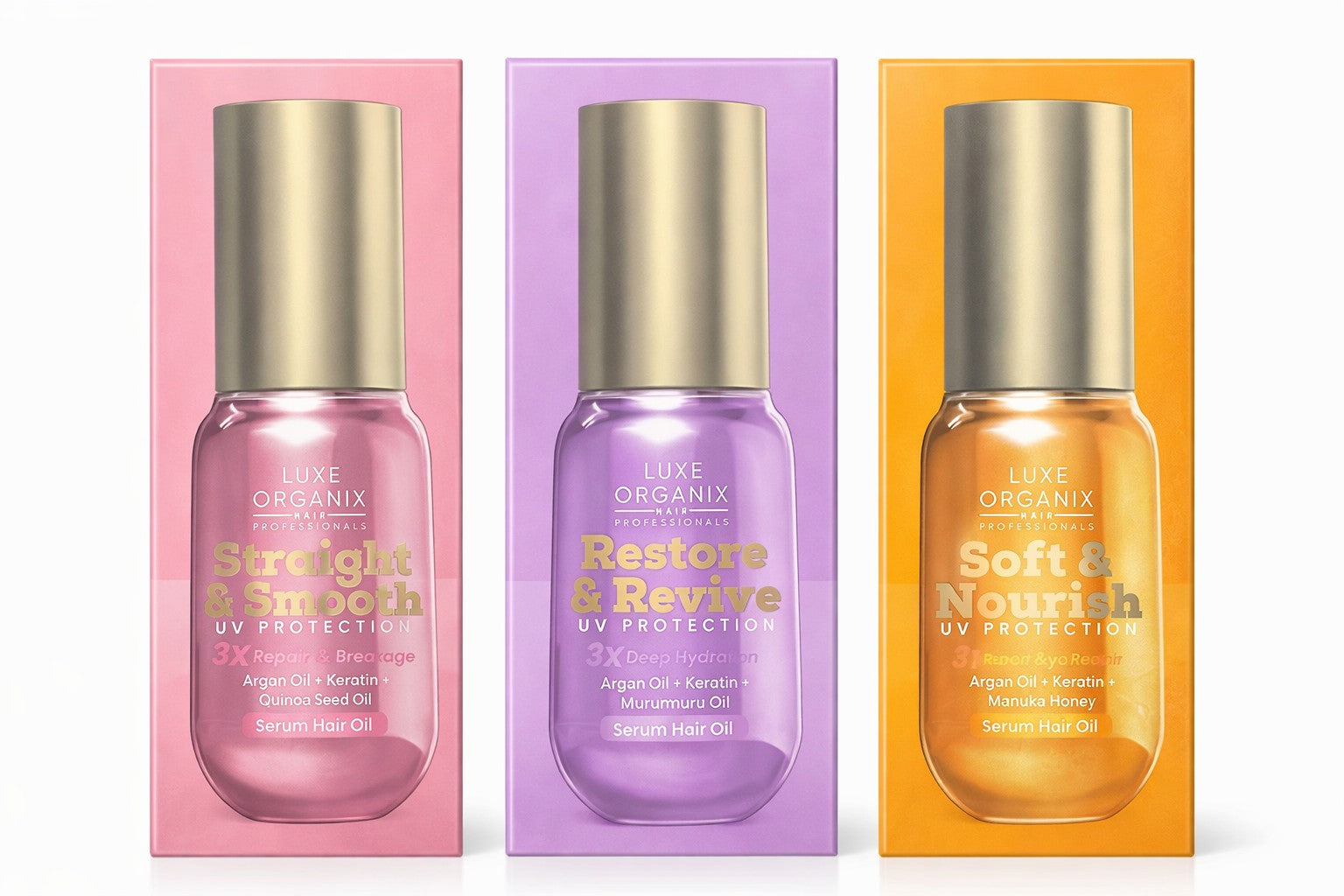 Luxe Organix Hair Professionals Serum Hair Oil 60ml – UV Protection Lightweight Argan Oil + Keratin Hair Care